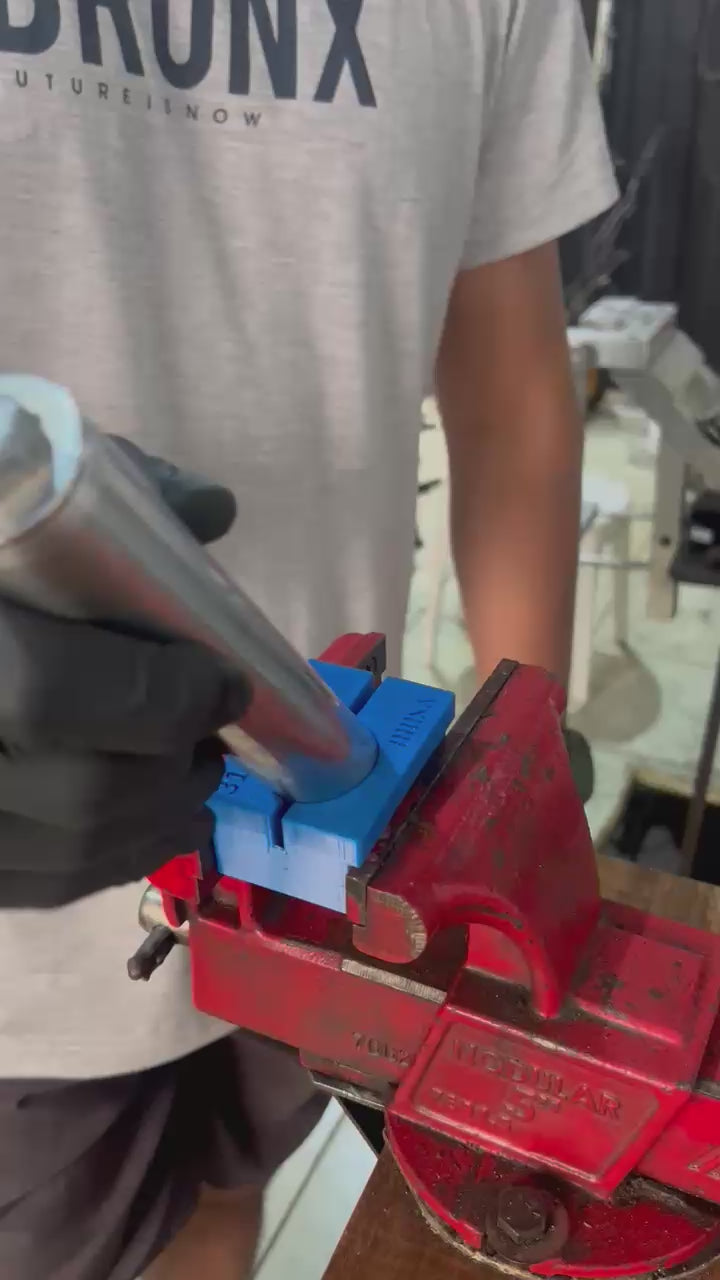 Mordente para Tubo cromado 31mm, segura o tubo na diagonal oferecendo uma posição melhor para trabalhar, principalmente em morsas menores.